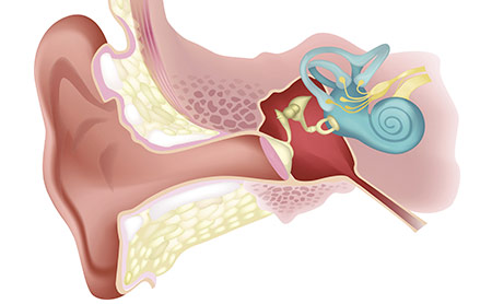 Von außen sieht man nur die Ohrmuschel sowie einen kleinen Teil des Gehörgangs. Das Hören findet jedoch zum größten Teil im Inneren des Kopfes statt. Dabei laufen komplexe Prozesse ab, die Schwingungen in der Luft – also Schall – in elektrische Nervenimpulse verwandelt. Unser Gehirn versteht diese als Töne, Geräusche und Sprache.